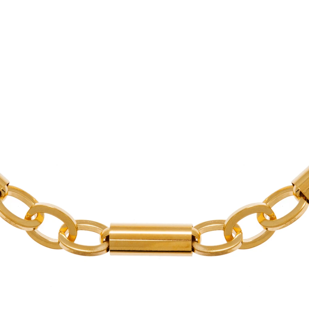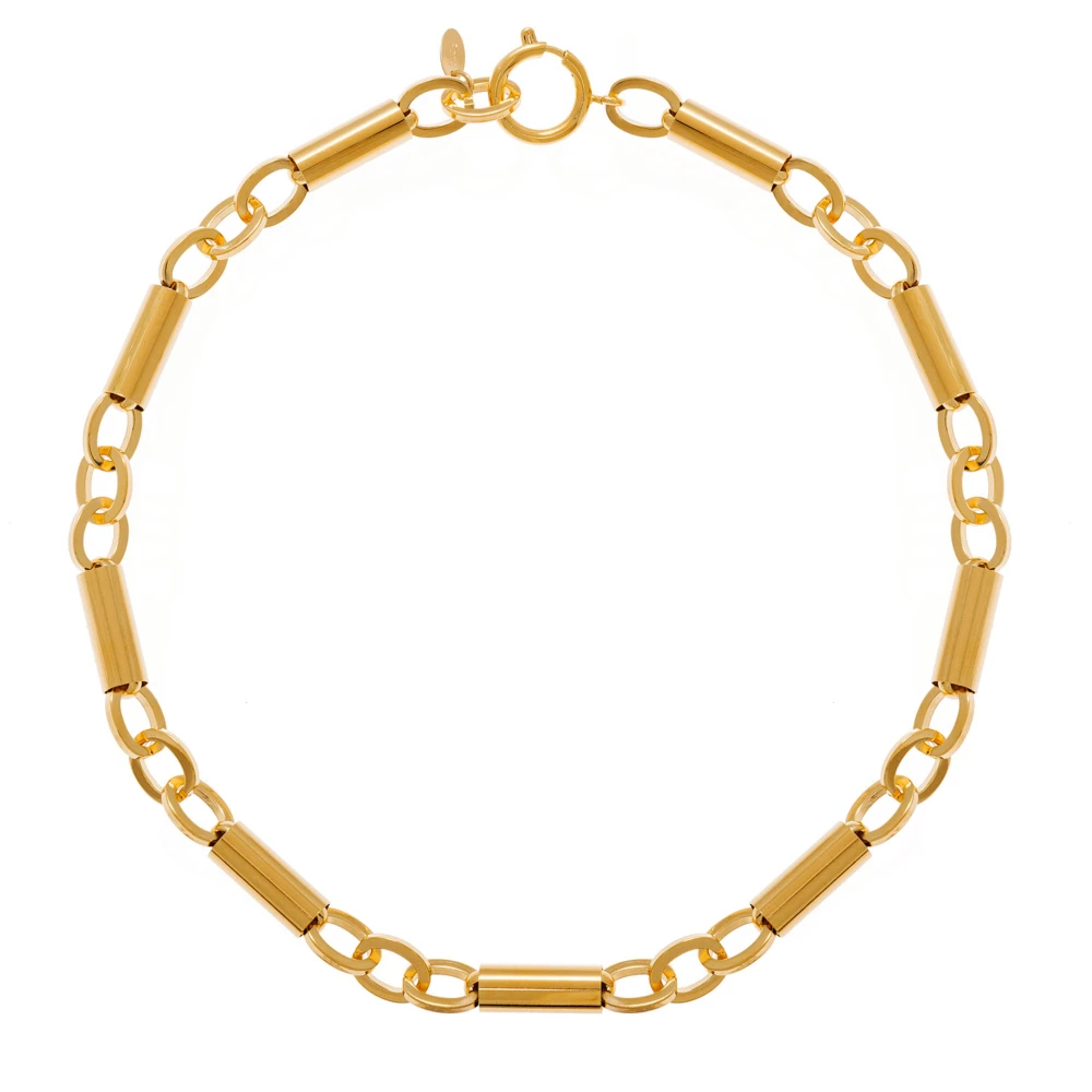 Collier maillons tubes signé Viadoli, doré à l’or fin 24k.
