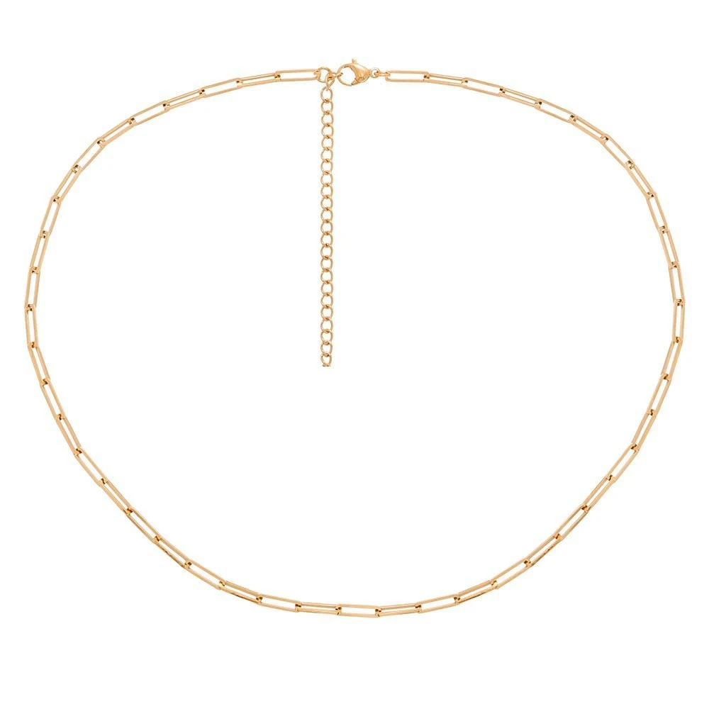 Collier maillons rectangulaires en acier chirurgical trempé dans un bain doré signé Siloé Paris.