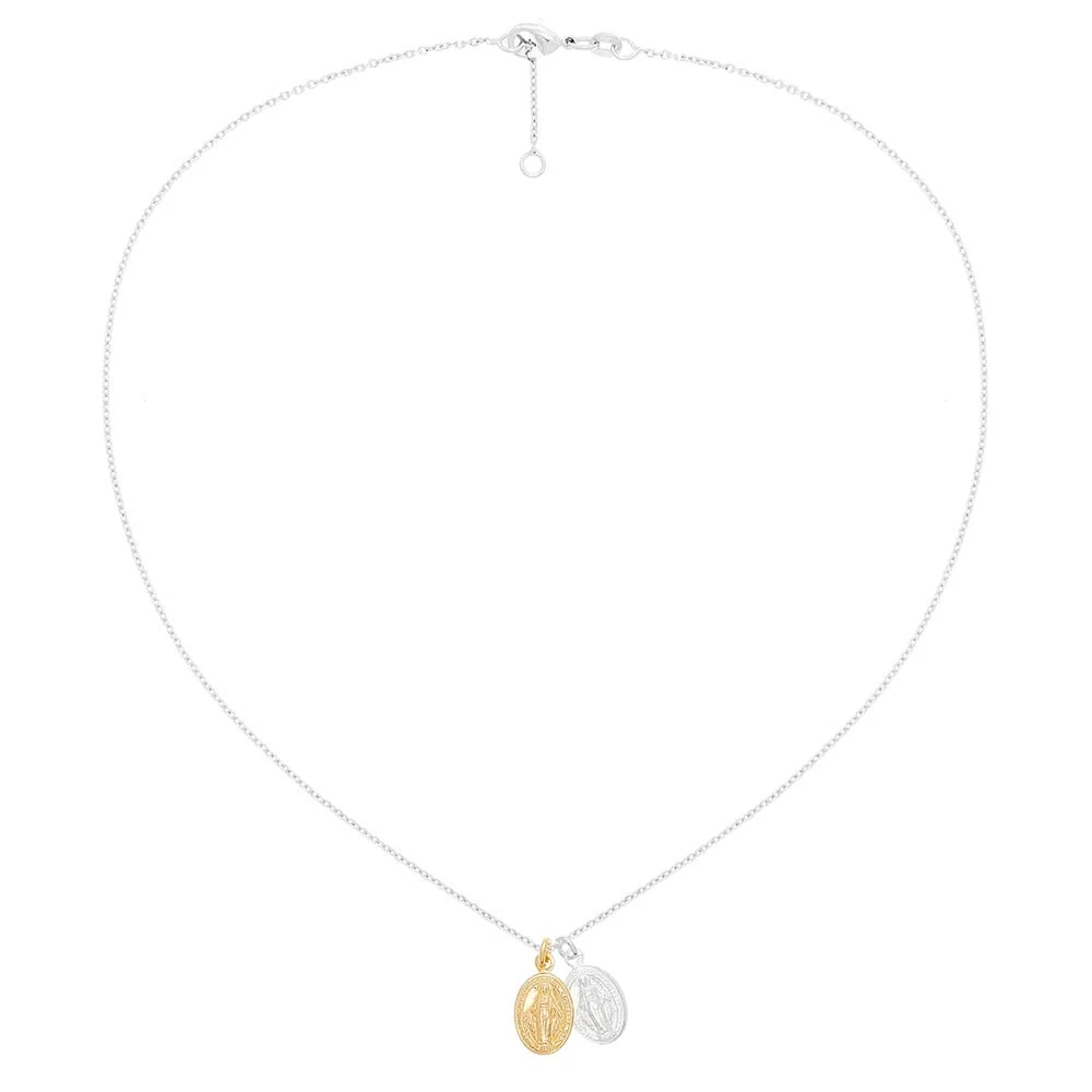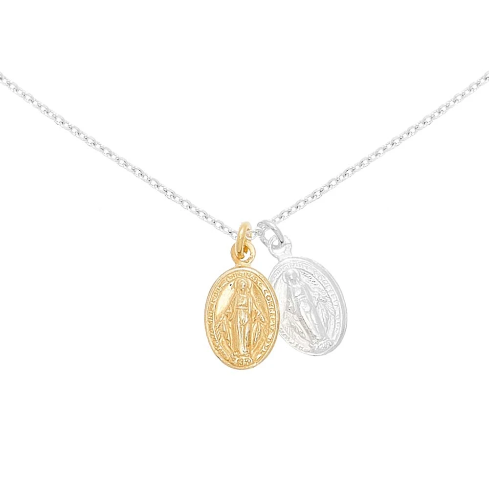 Ce collier signé ByJollia en argent 925/1000 et en plaqué or, il est composé d’une médaille madone en argent et d’une médaille plaqué or.