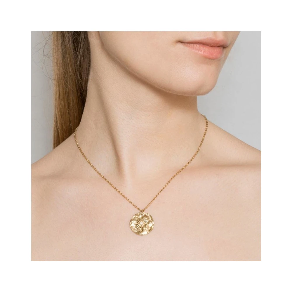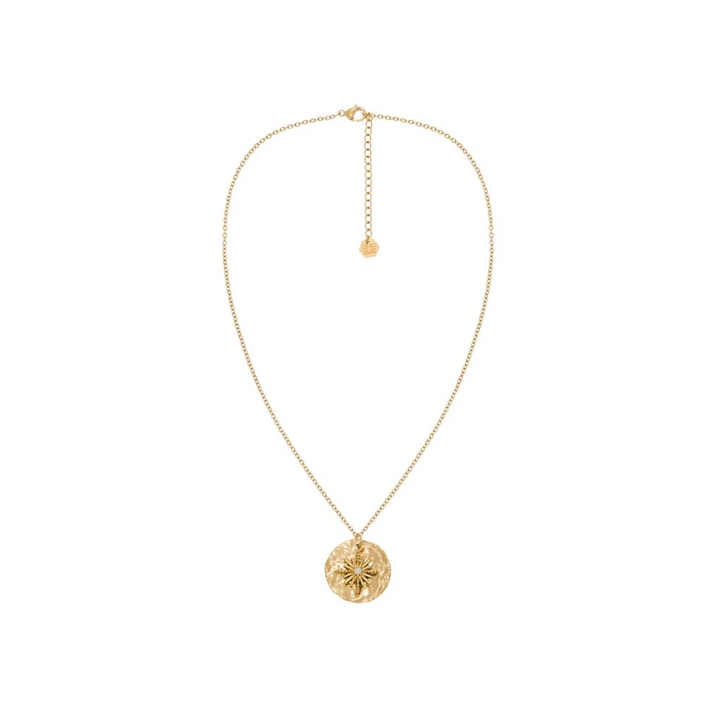 Ce collier en acier chirurgical trempé dans un bain doré de la collection Aglaé est signé EME Paris. Il est composé d’une médaille agrémentée d’une étoile.