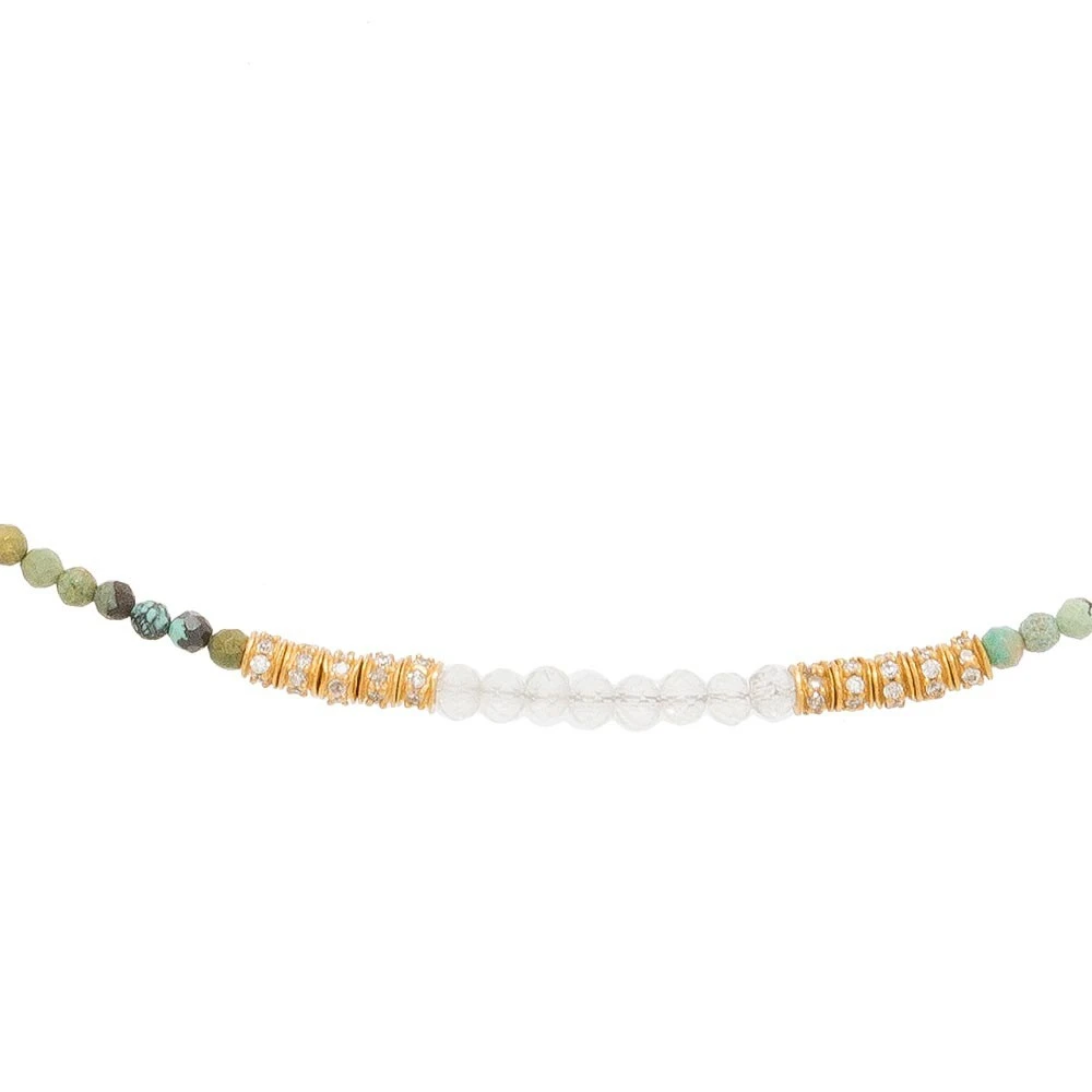 Collier multi pierres et zircon (turquoise) en laiton doré à l’or fin 18 carats et 1 micron signé Une A Une.