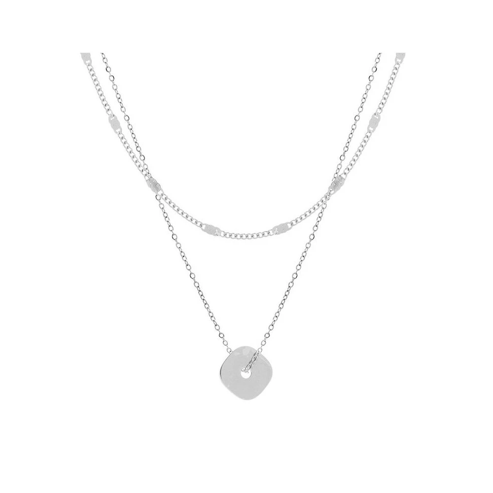 Coller en acier chirurgical trempé dans un bain d’argent signé Zag Bijoux. Il se compose d’une médaille en forme carré arrondit.