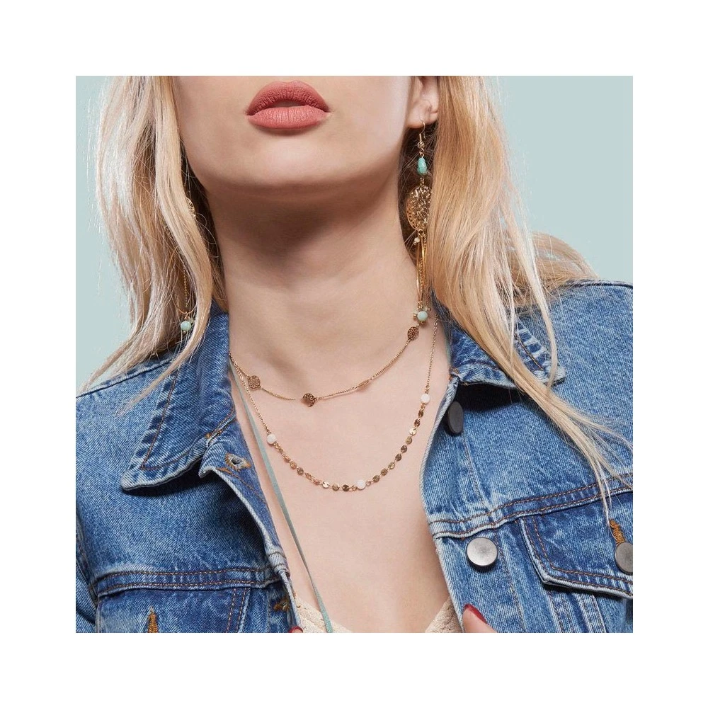 Longueur 36 cm déployée + 5 cm de chaîne de réglage. Ce collier est en laiton doré avec 1 micron d’or.