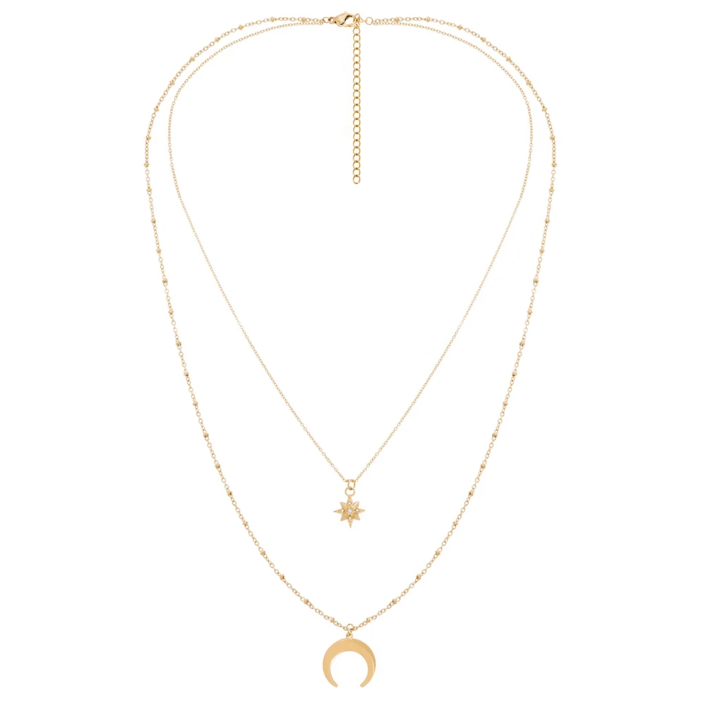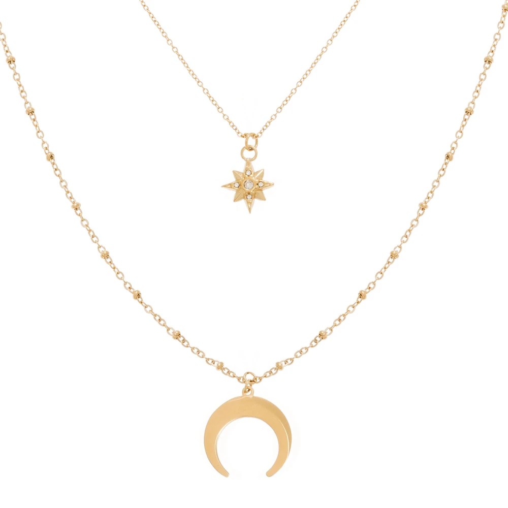Ce collier multirang signé Siloé est accompagnée d’une étoile polaire en zircon sur le premier rang, ainsi que d’une corne doré sur le deuxième rang.