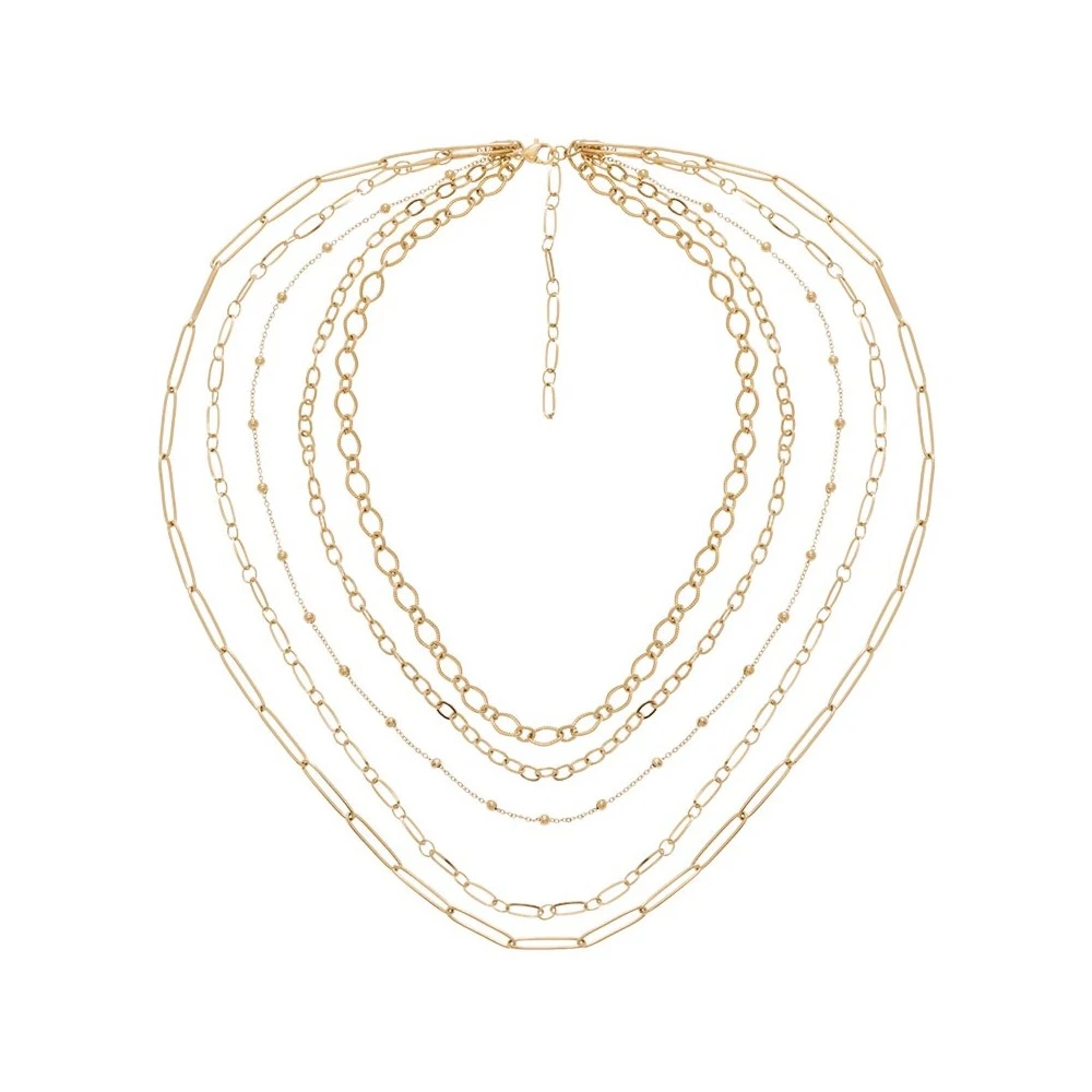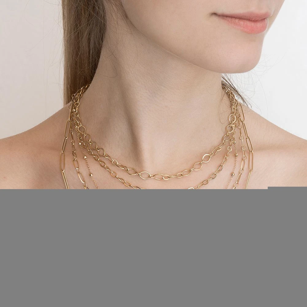 Collier multirangs maillons en acier chirurgical trempé dans un bain doré signé Siloé Paris.