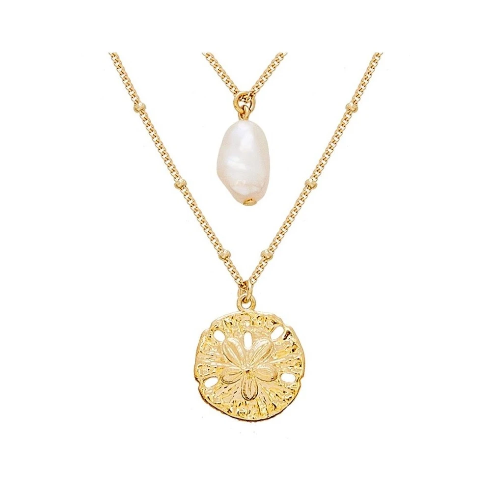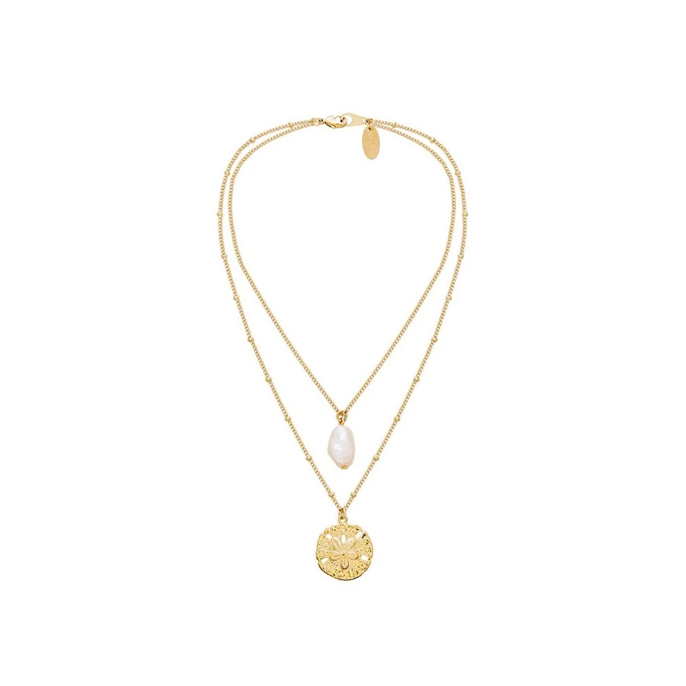 Ce collier multirangs Viadoli de la collection Oursin est en laiton doré à l’or fin 24 carats sans nickel. Il se compose d’une médaille et d’un pendentif perle de culture.