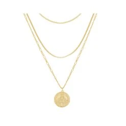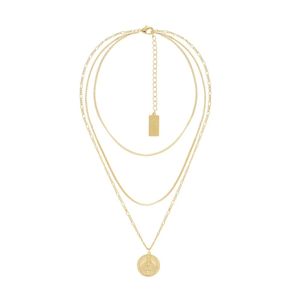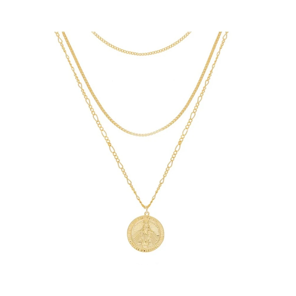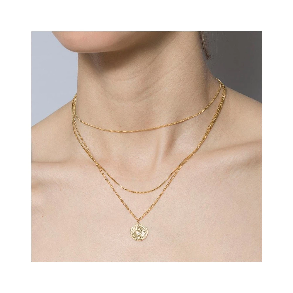 Collier multirangs composé d’une médaille Vierge Marie et plaqué or 18K signé Girls Crew.
