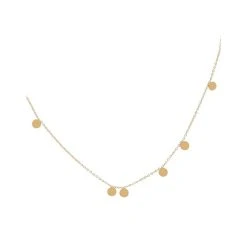 Ce collier asymétrique doré à l’or fin 24k est signé Fabien Ajzenberg. Il est agrémenté de petites pastilles dorées.