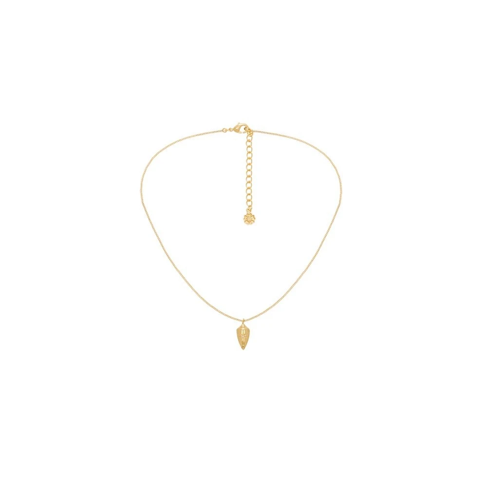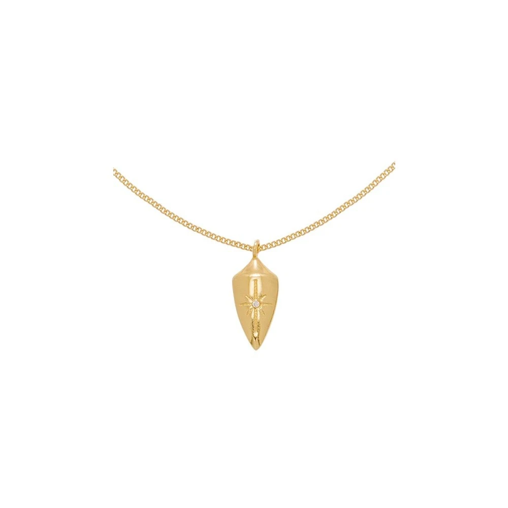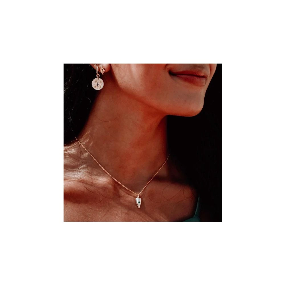 Collier pendentif dent et zircon blanc en son centre signé Azuni.