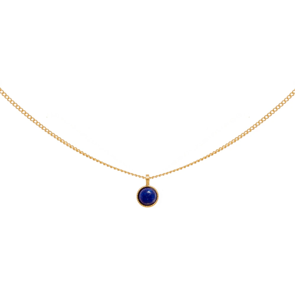 Collier pendentif pierre naturelle bleu en lapis signé Viadoli, doré à l’or fin 24k avec sa châine de réglage.