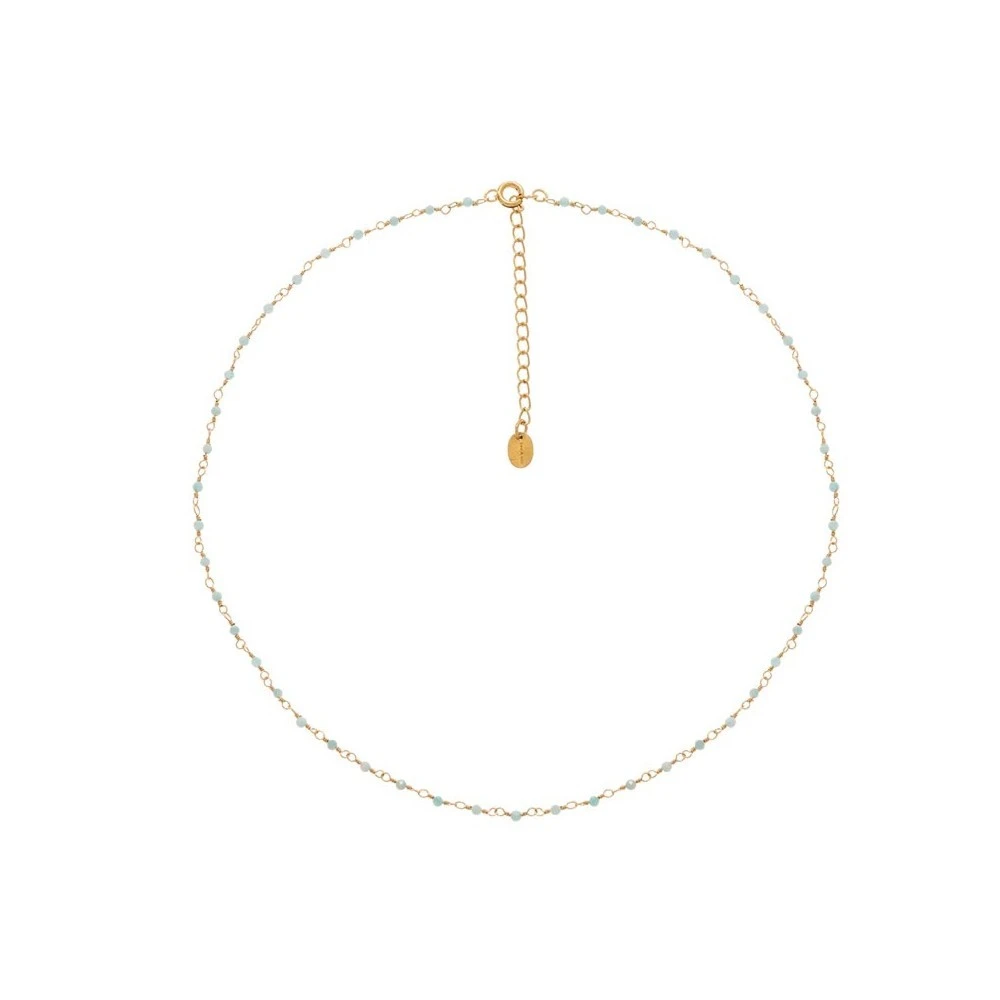 Collier perles fines multi aqua signé Une A Une, en laiton doré à l’or fin 18 carats et 1 micron.