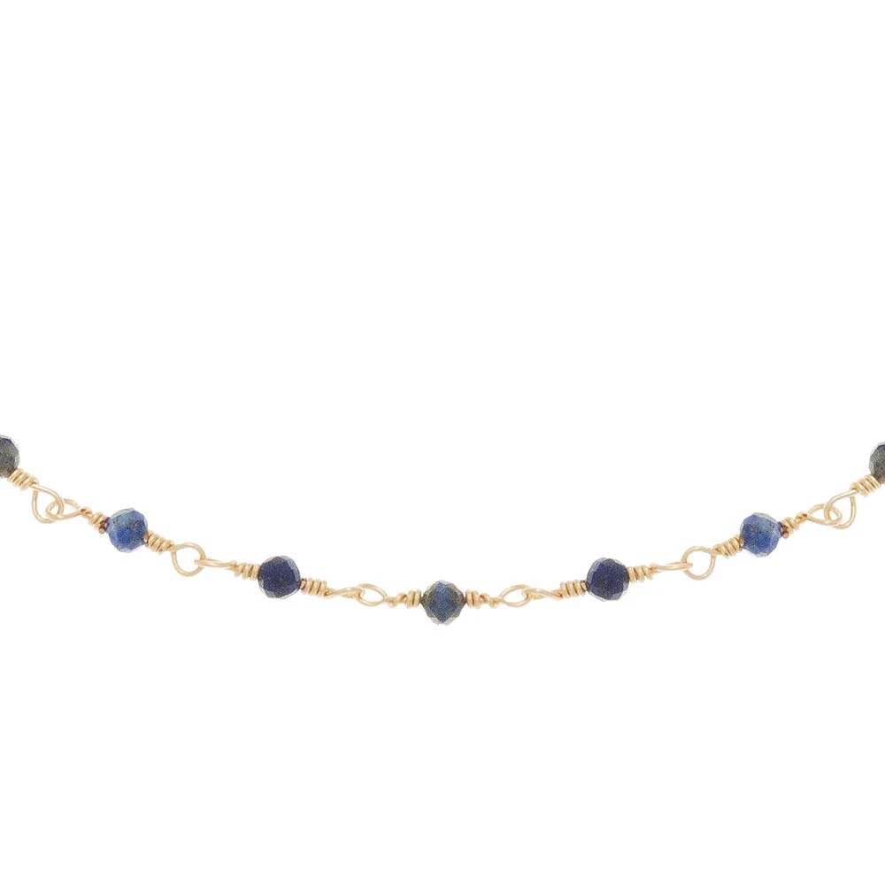 Collier perles fines bleu marine Lapis lazuli, en acier chirurgical trempé dans un bain doré signé Siloé.