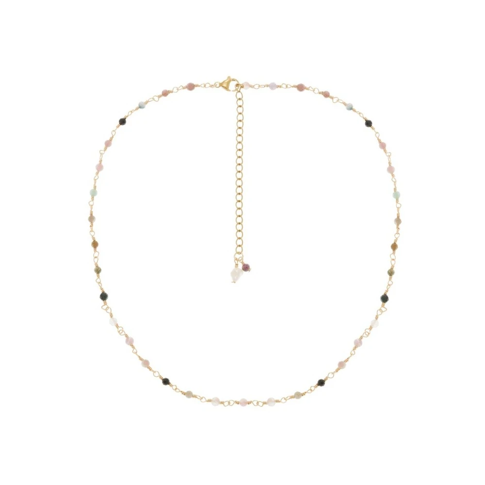 Collier perles fines tourmaline en acier chirurgical trempé dans un bain doré signé Siloé.