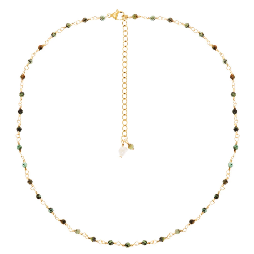 Collier perles fines turquoise africaine en acier chirurgical trempé dans un bain doré signé Siloé.