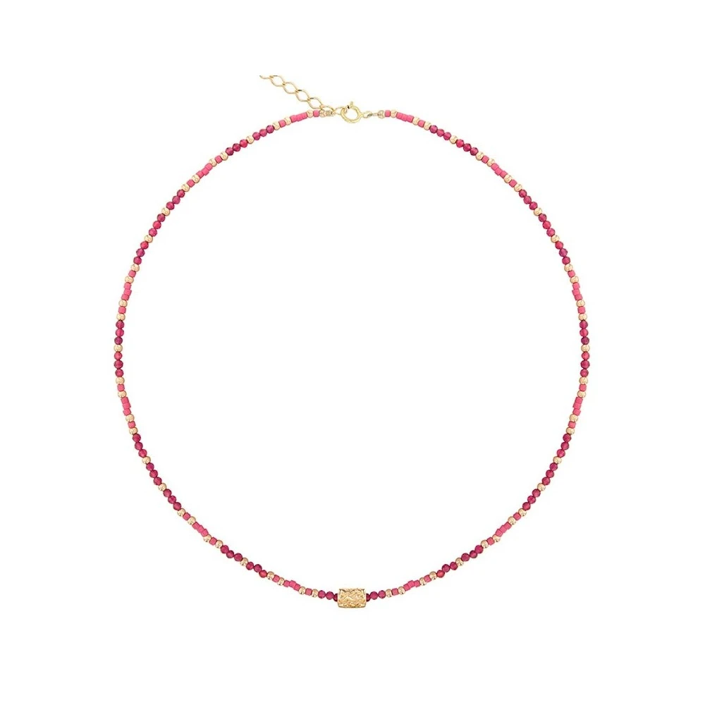 Collier agrémenté de pierres fines grenat et de perles de miyuki prune signé Oscar Bijoux.