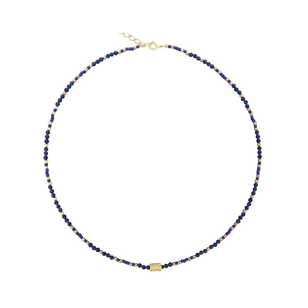 Collier agrémenté de pierres fines saphire et de perles de miyuki bleues nuit signé Oscar Bijoux.