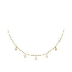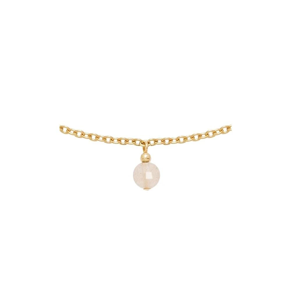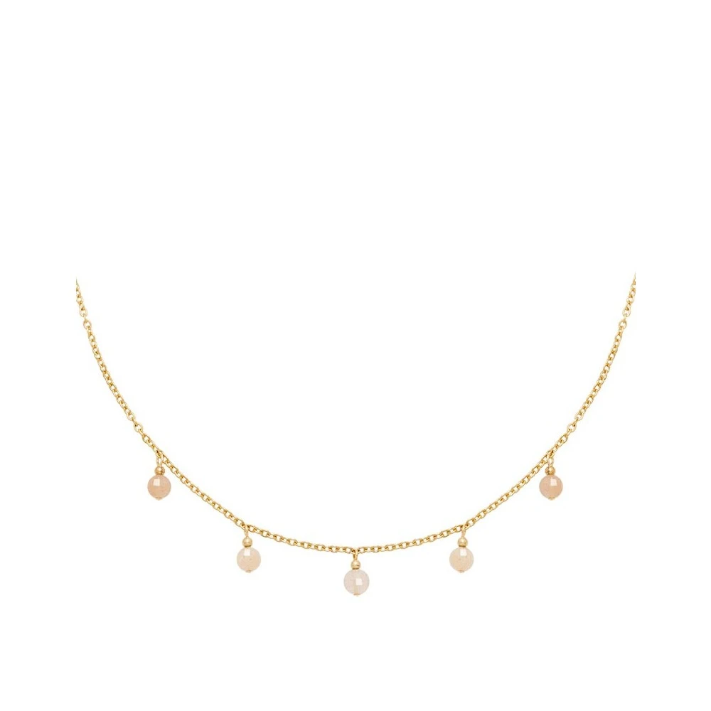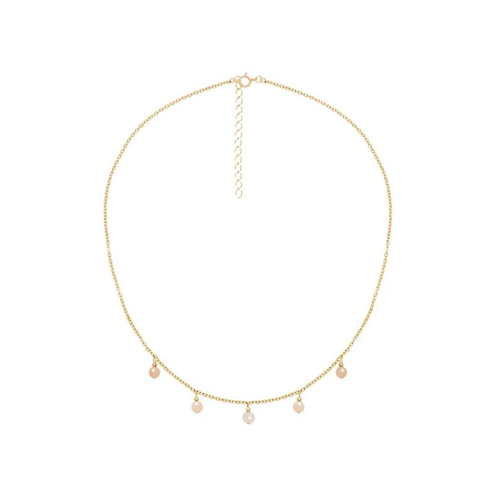 Ce collier signé Oscar Bijoux est en plaqué or 14 carats et est composé de pierres naturelles suspendues en pierre du soleil.