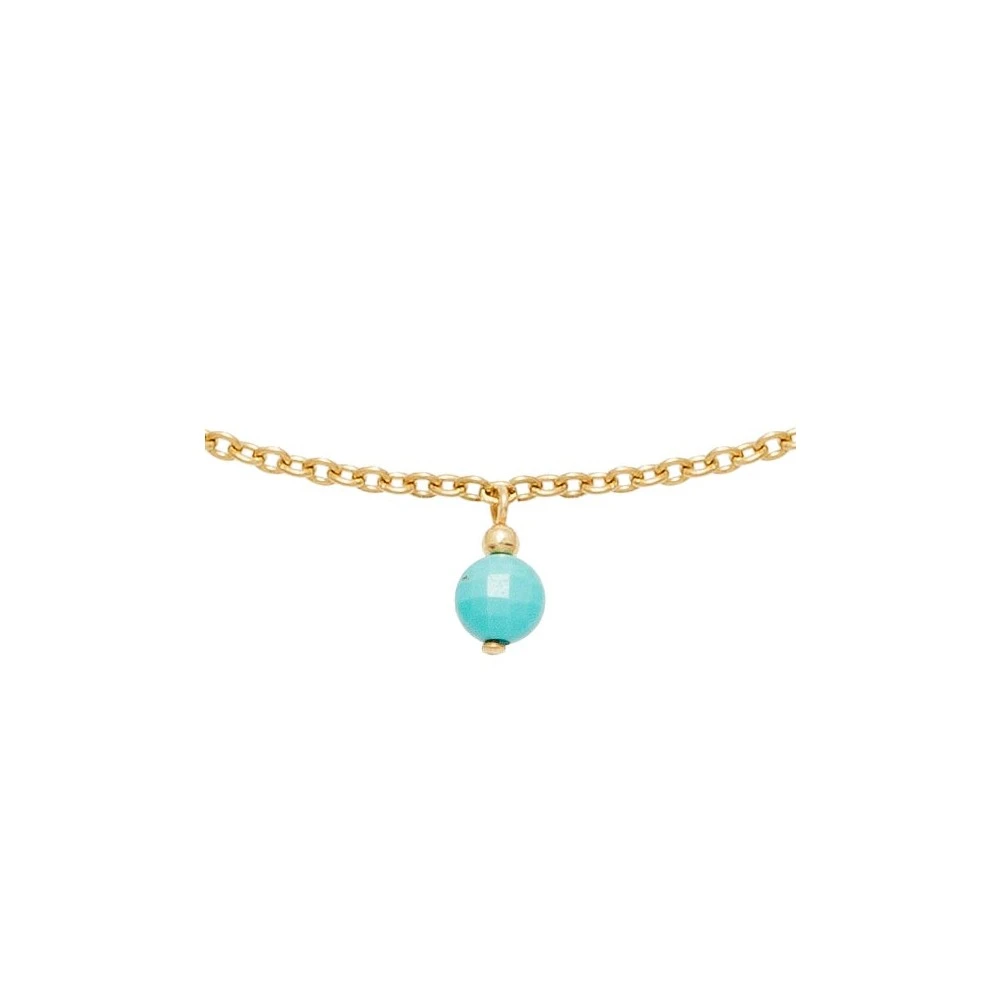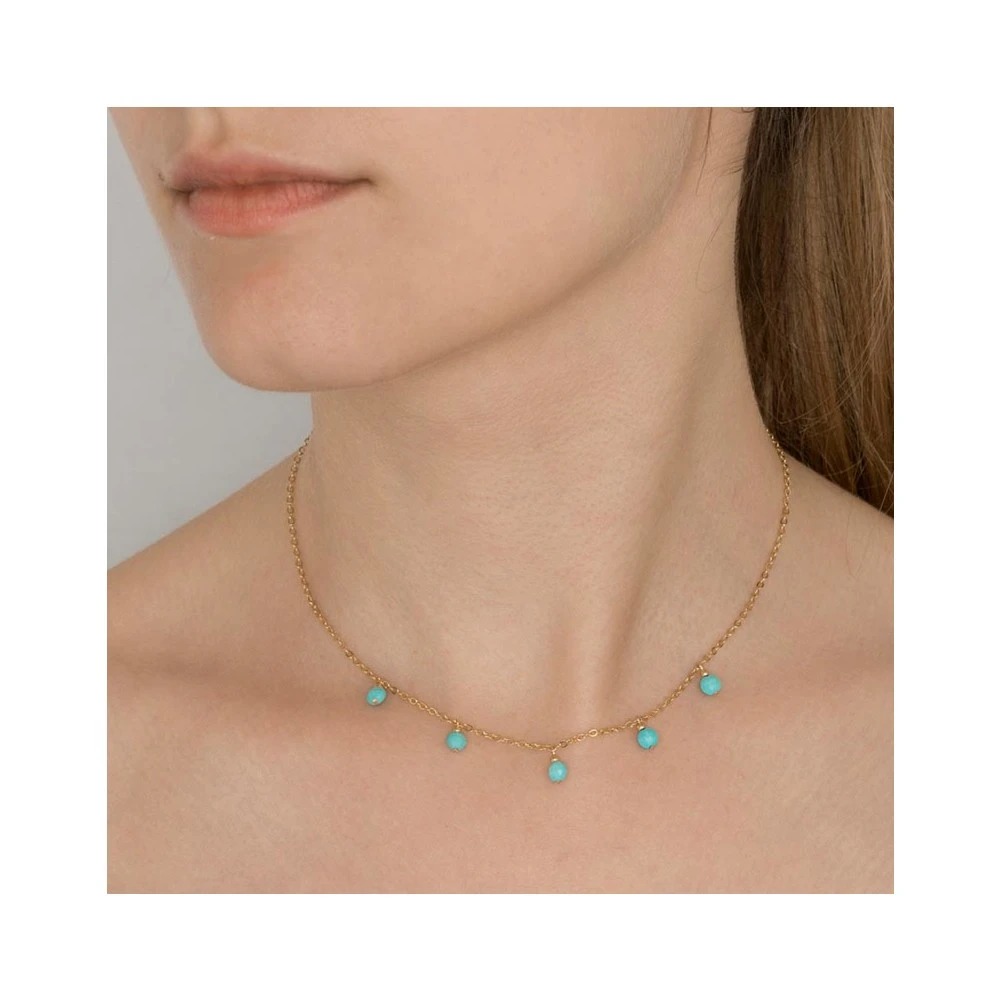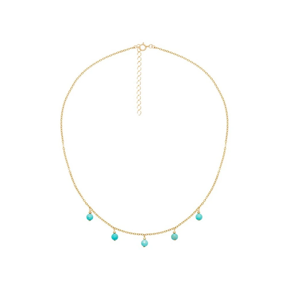 Ce collier signé Oscar Bijoux est en plaqué or 14 carats et est composé de pierres naturelles suspendues en turquoise.