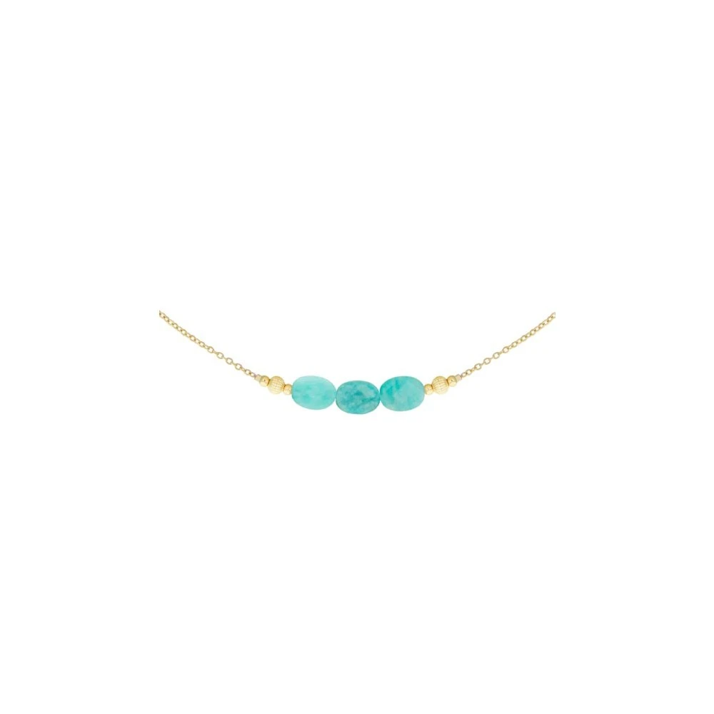Collier agrémenté de pierres semi-précieuses en amazonite et de perles plaquées or, signé Oscar Bijoux.