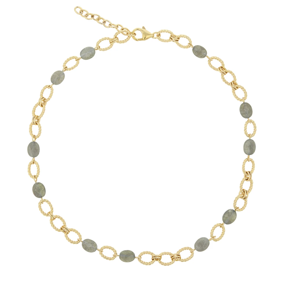 Collier pierres fines en labradorite signé Oscar Bijoux.