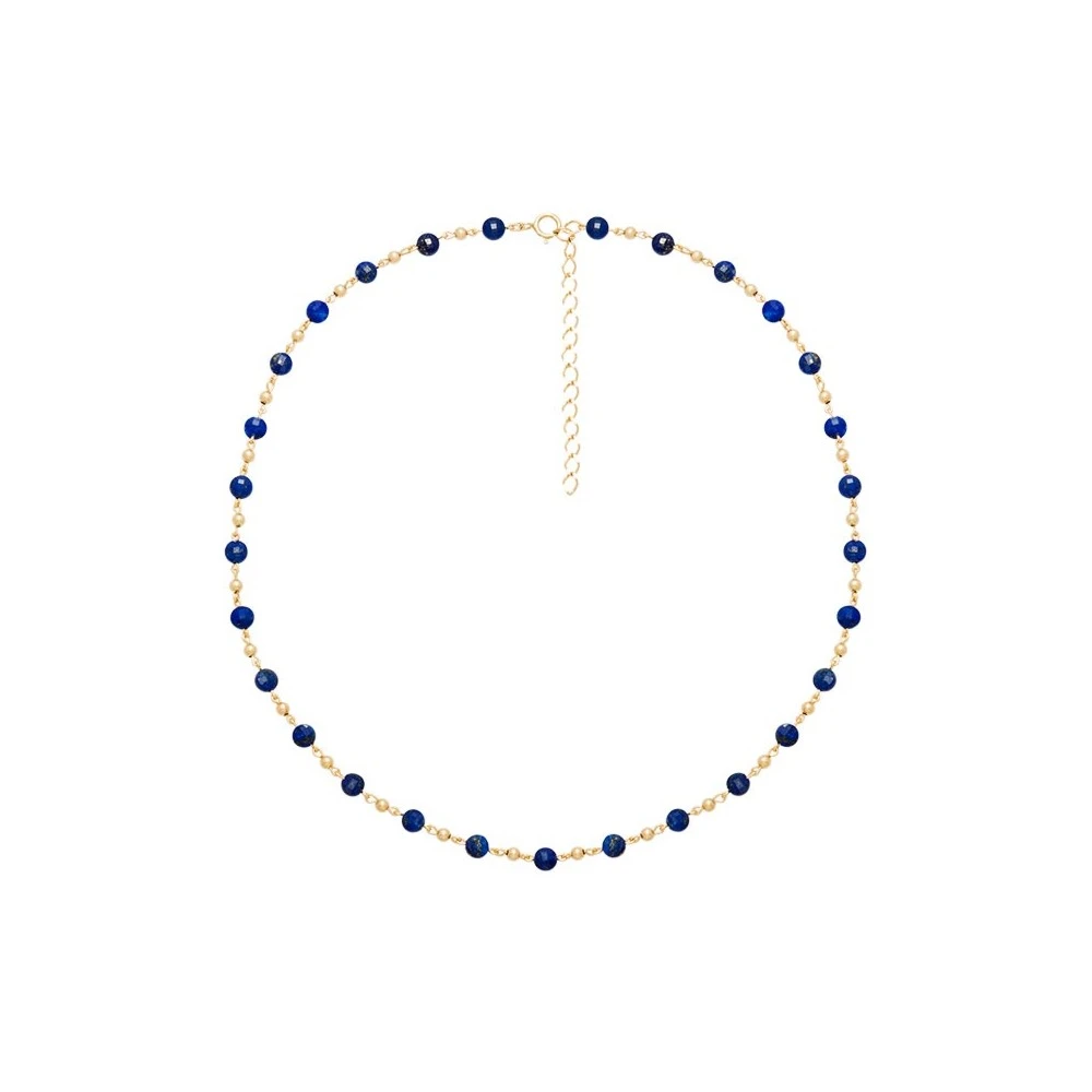 Ce collier signé Oscar Bijoux est en plaqué or 14 carats et est composé de pierres fines en lapis lazuli.