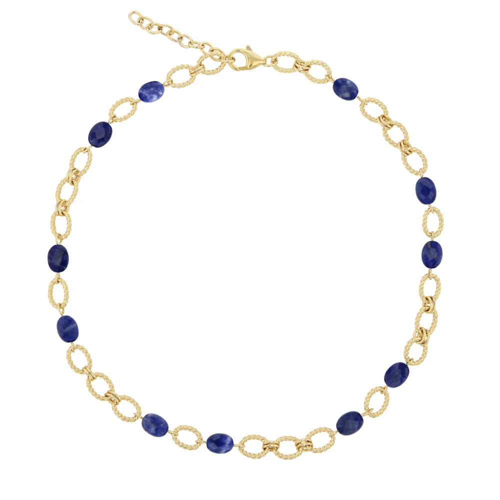 Collier pierres fines en sodalite signé Oscar Bijoux.