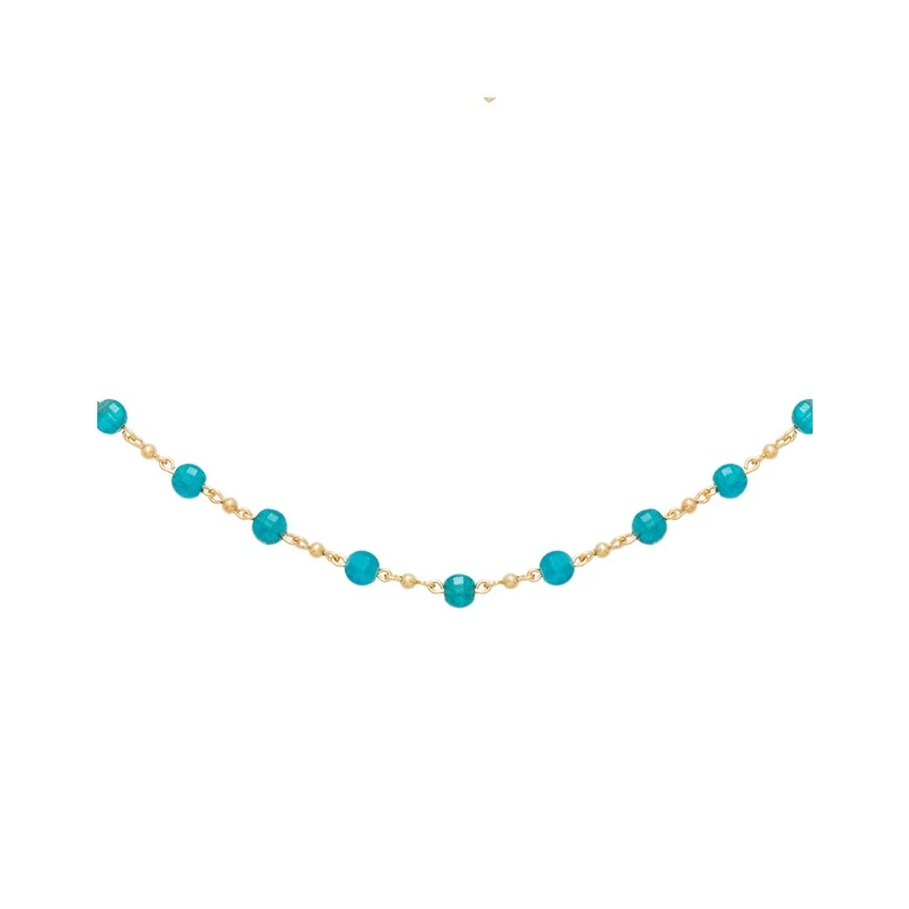 Ce collier signé Oscar Bijoux est en plaqué or 14 carats et est composé de pierres fines en turquoise.