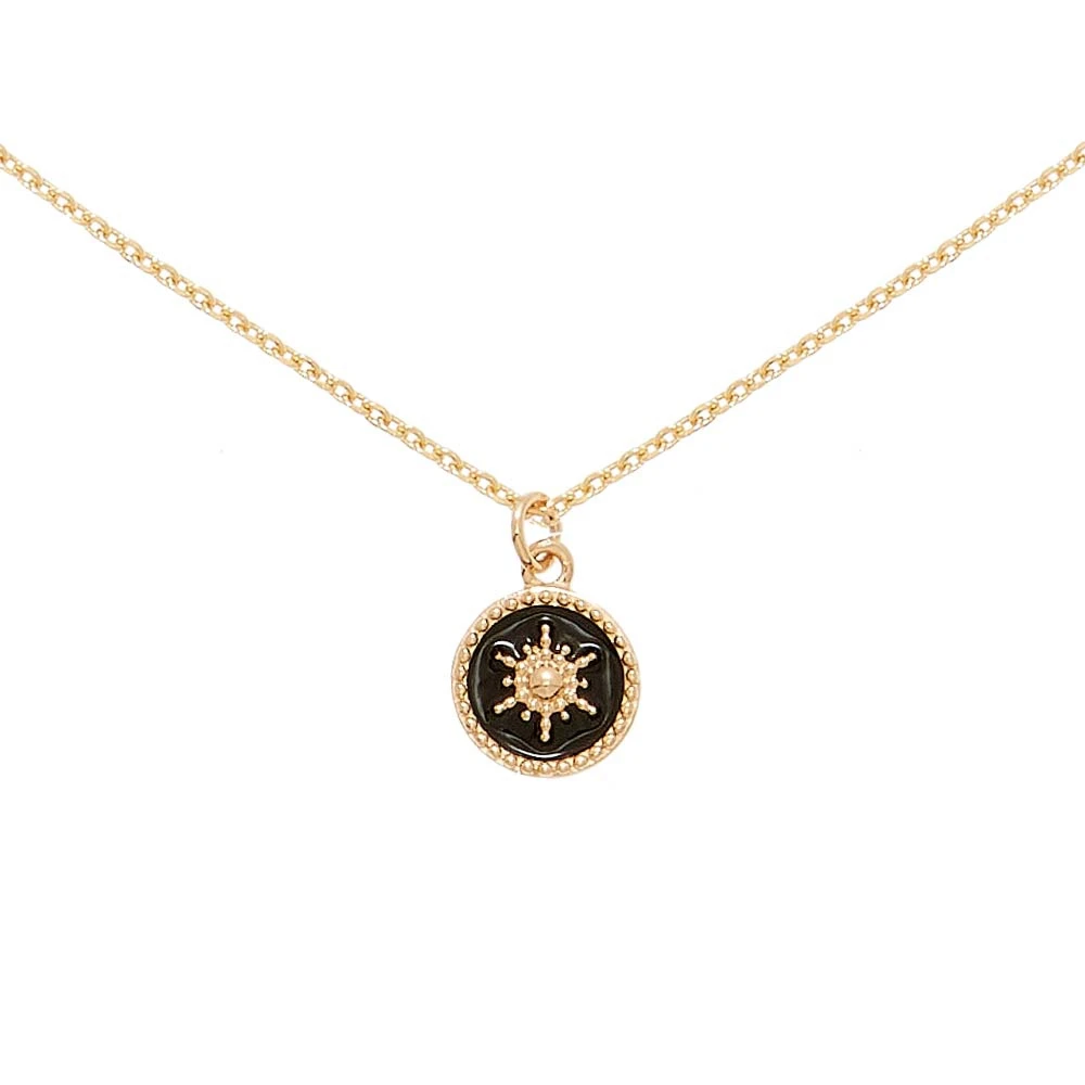 Collier en plaqué or composé d’une médaille étoile noire, signé by Jollia.
