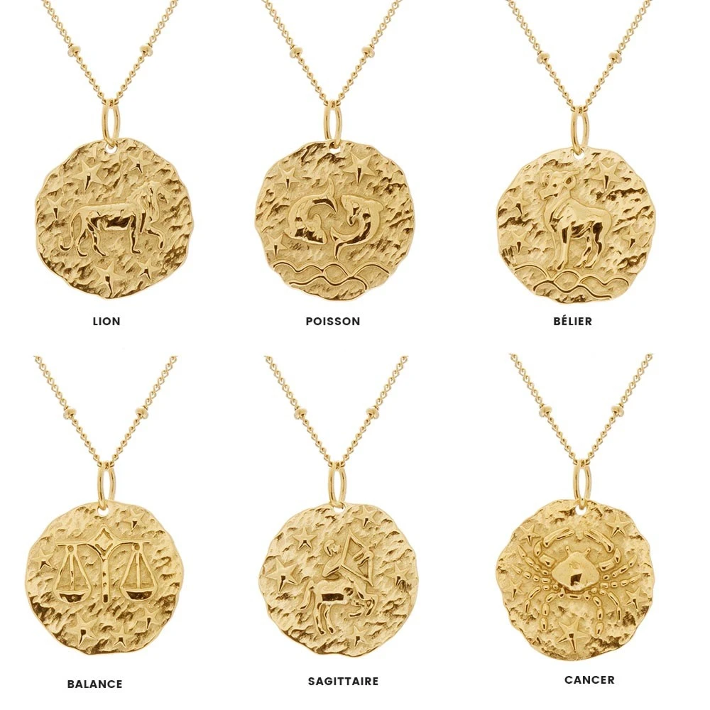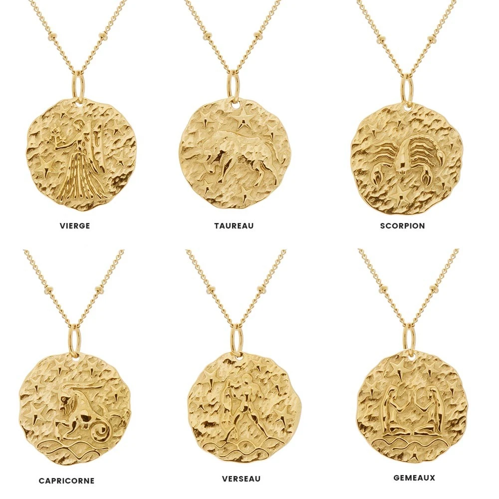 Collier médaille signe Astro en acier chirurgical doré à l’or fin signé siloé. Signe au choix. La médaille se compose du signe au recto, et d’un mot associé au verso.