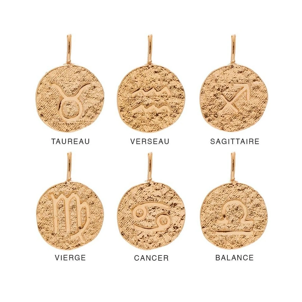 Collier médaille martelée sous le signe astrologique Balance en plaqué or by Jollia.