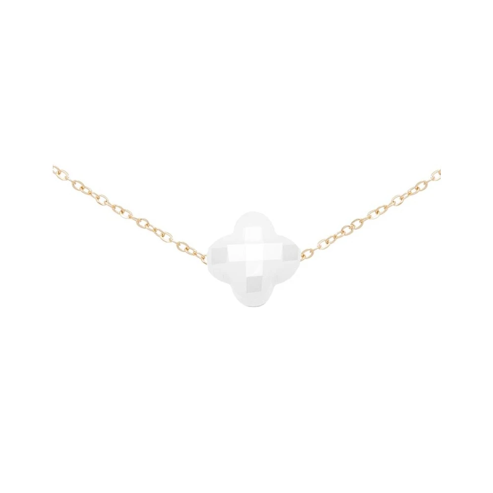 Ce collier trèfle facetté blanc en plaqué or 3 microns est signé By Jollia.