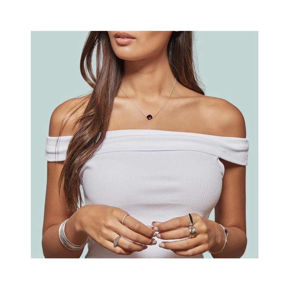 Ce collier trèfle facetté noir en plaqué or 3 microns est signé By Jollia.