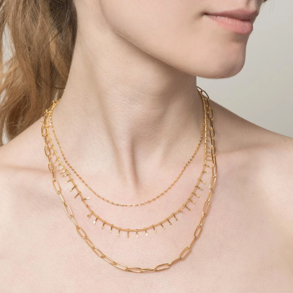 Collier multirangs en acier chirurgical trempé dans un bain doré signé Siloé.