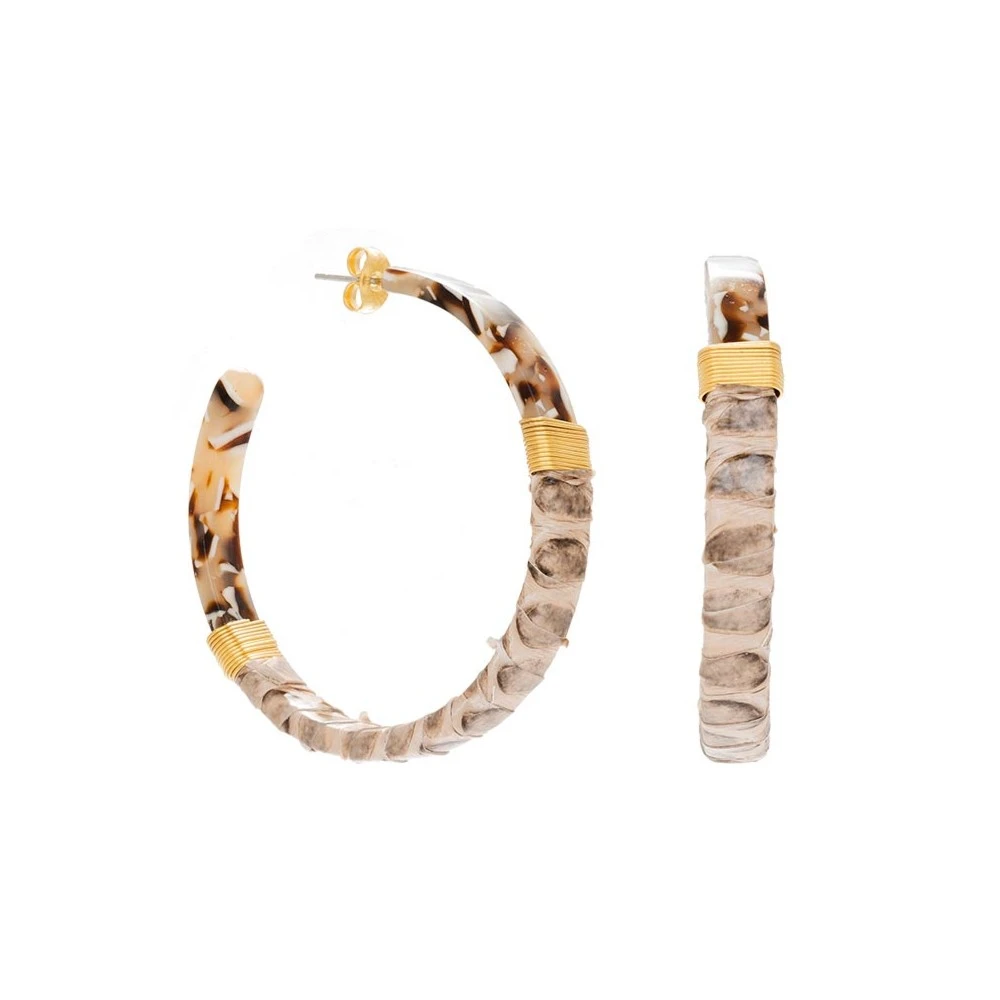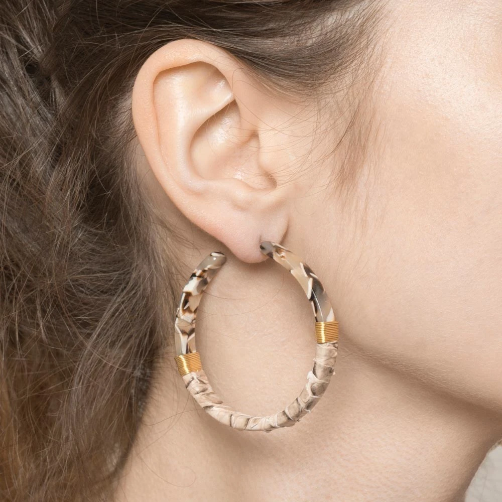 Ces créoles acétate sont en acier chirurgical trempé dans un bain doré et signées Siloé.