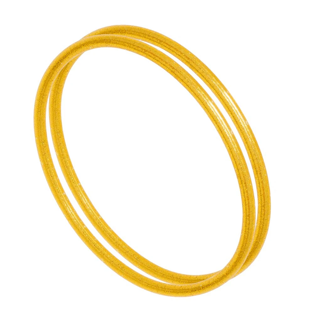 Duo de bracelets jonc bouddhiste souple transparent en caoutchouc, signé Siloé, rempli de poudre d’or.