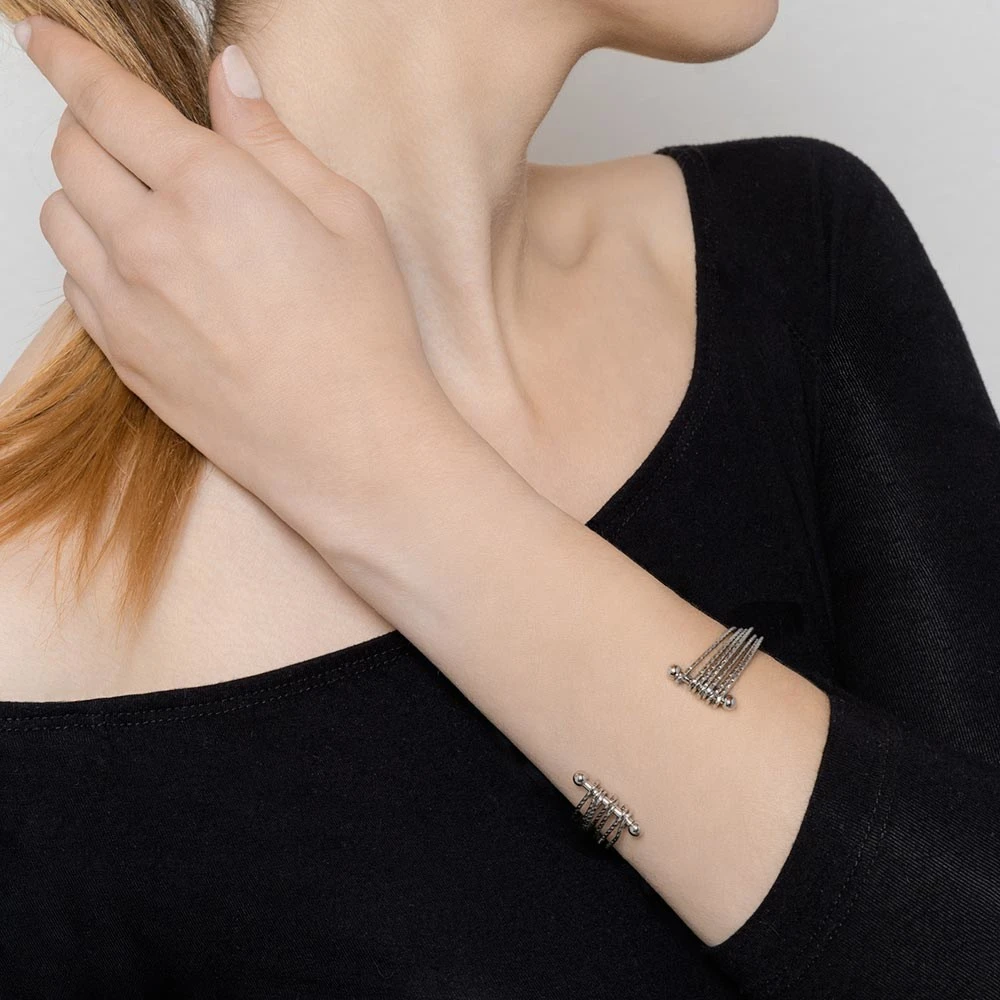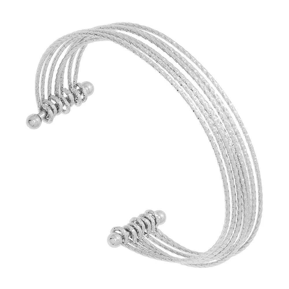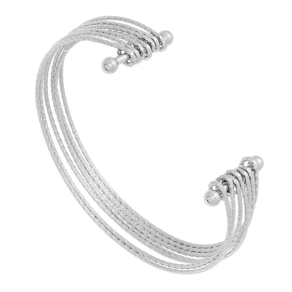 Manchette multirangs vrillée argentée en acier inoxydable.