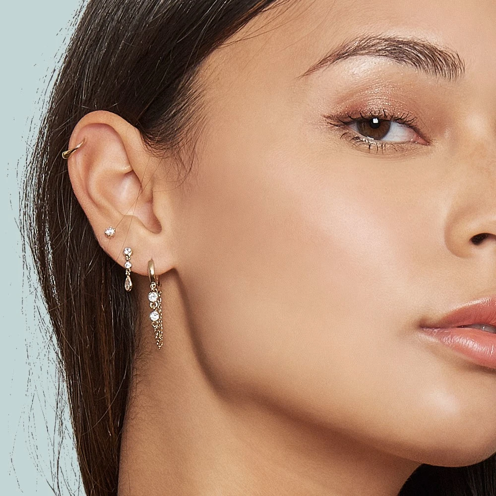 Mini créoles chaines et cristal en plaqué or signées By Jollia.