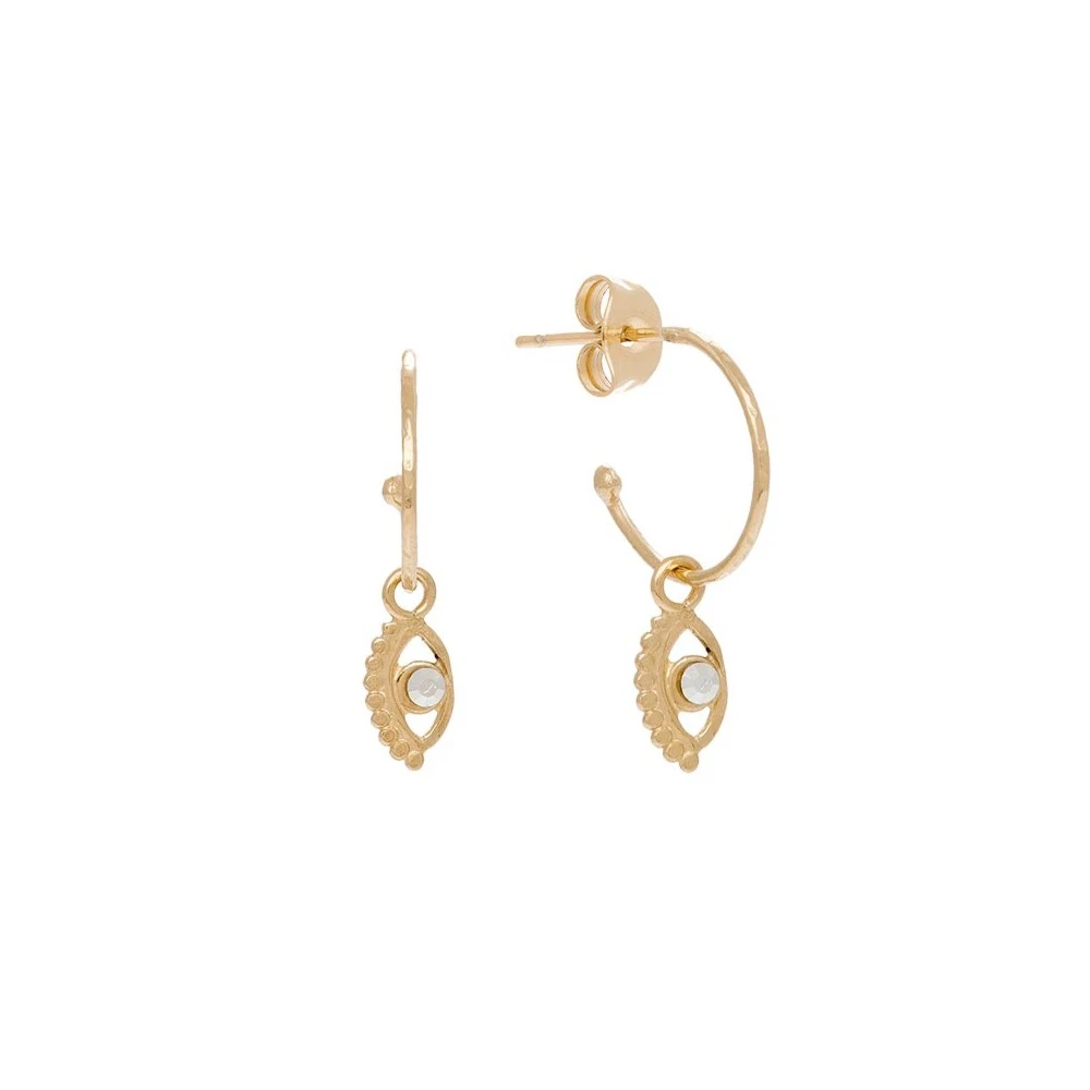 Mini créoles oeil et zirconium facetté signées Stalactite en vermeil.