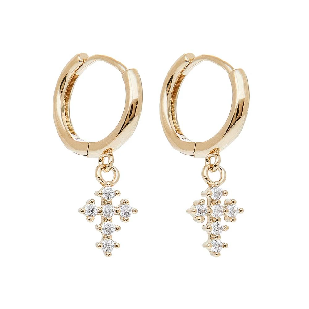 Ces puces pendentif croix zircons en plaqué or sont signées By Jollia.