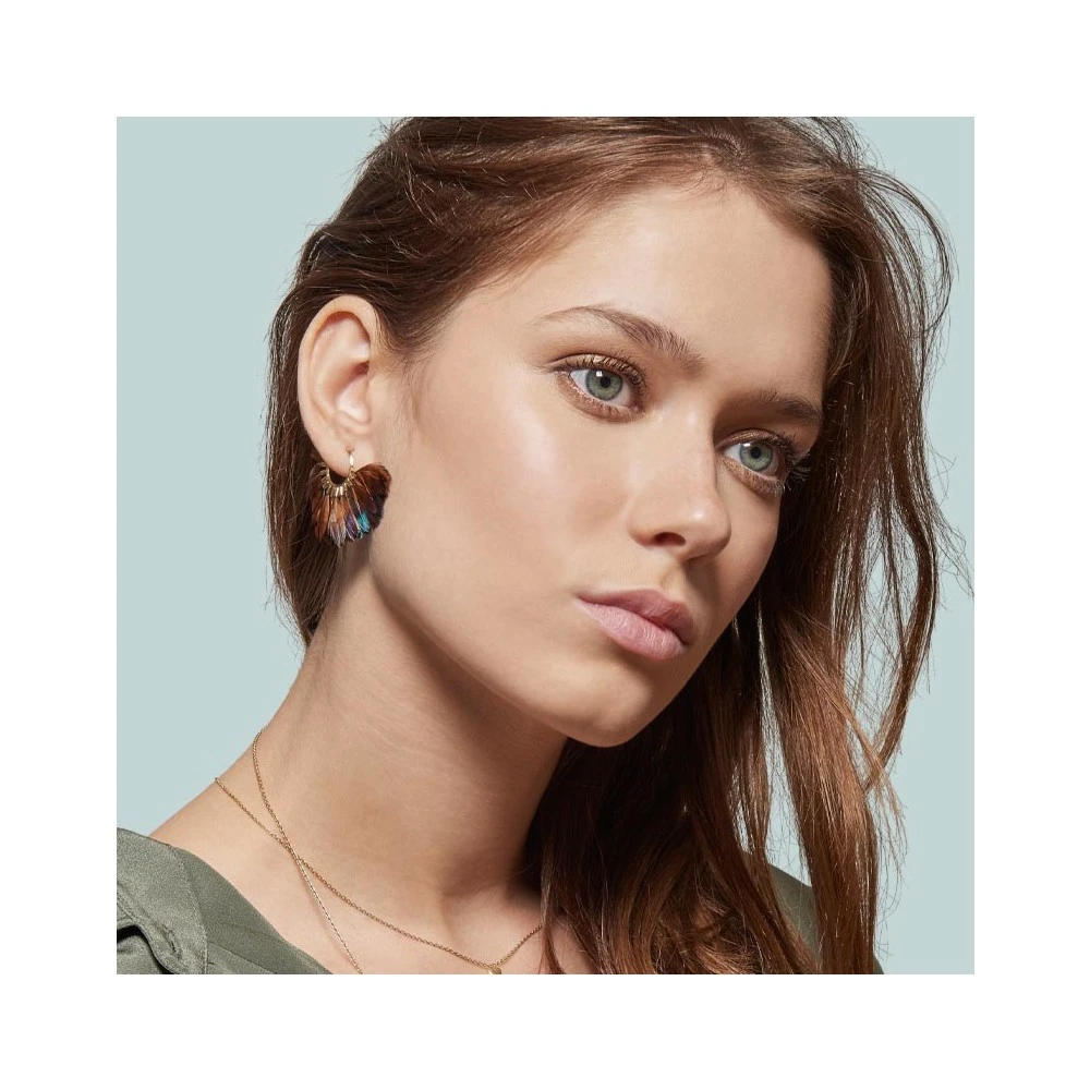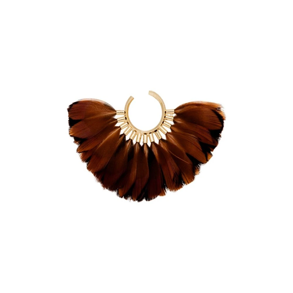 Cette mono boucle plumes marrons est signée Stalactite. Elle est doré à l’or fin 0,5 micron et composée d’une couronne de plumes.