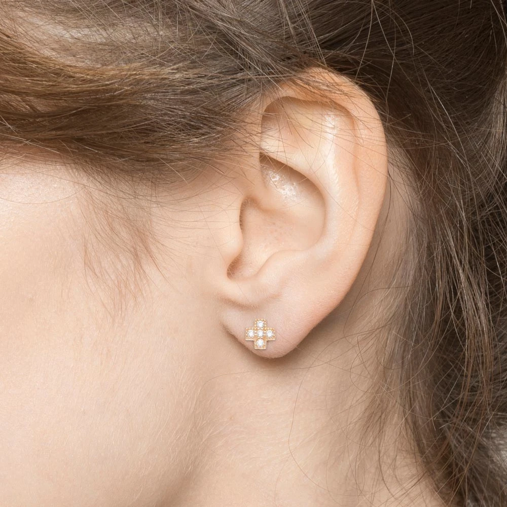 Puces d’oreilles croix et strass en plaqué or signées By Jollia.