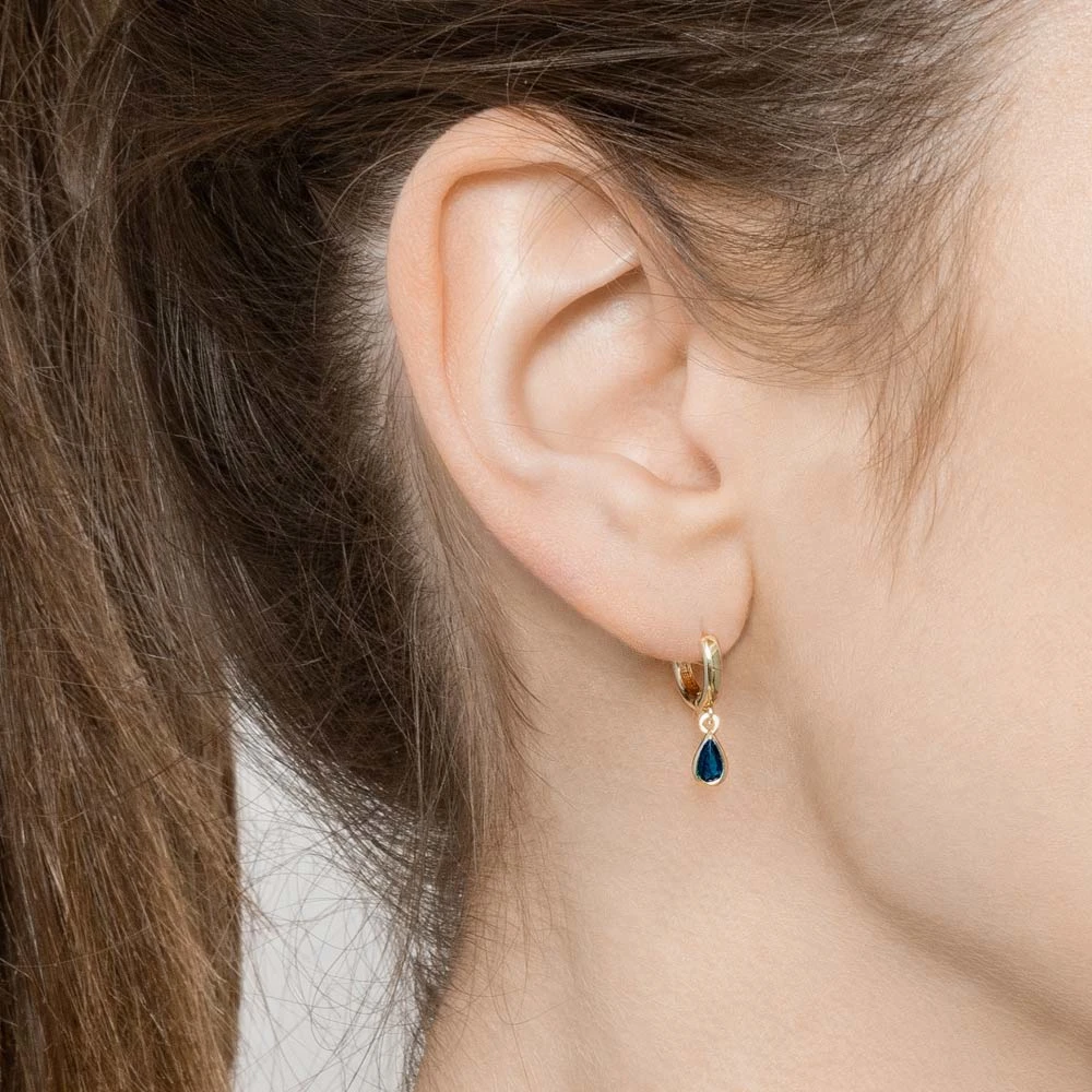 Ces puces pendentif goute bleue en plaqué or sont signées By Jollia.