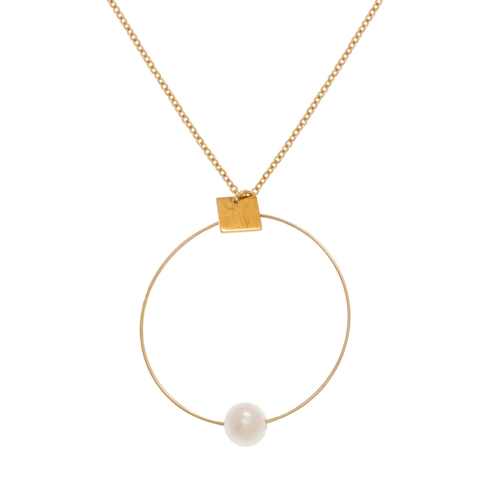 Ce sautoir cercle doré et nacre est signé Zag Bijoux en acier chirurgical trempé dans un bain doré.