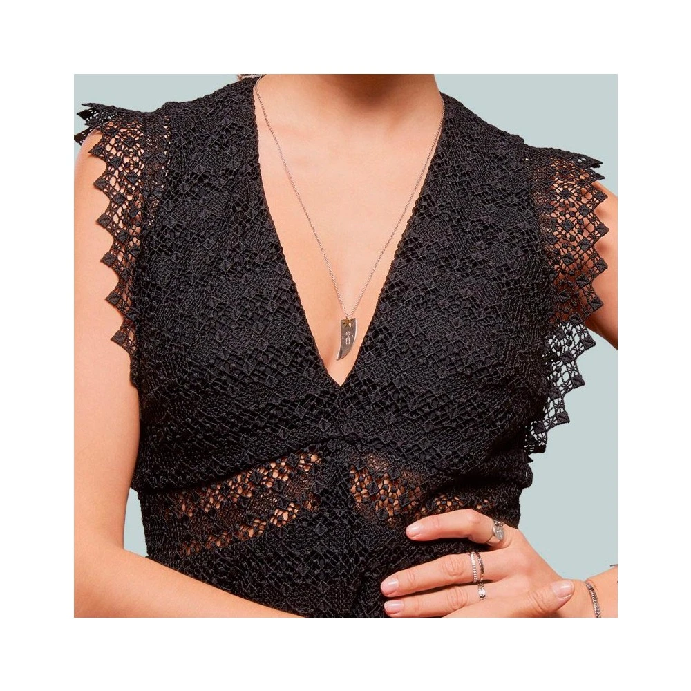 Ce sautoir signé Zag est orné d’un pendentif en forme de corne de zébu argenté, il est agrémenté d’un motif croix et d’un pendentif petite étoile dorée.