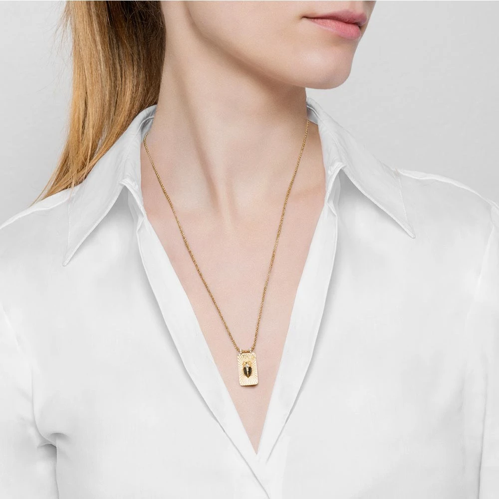 Sautoir Porte Bonheur pendentif scarabée en pierre labradorite inscrusté de zircons signé Leticia Ponti.