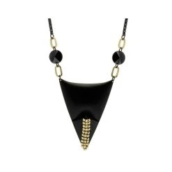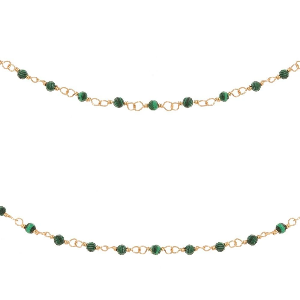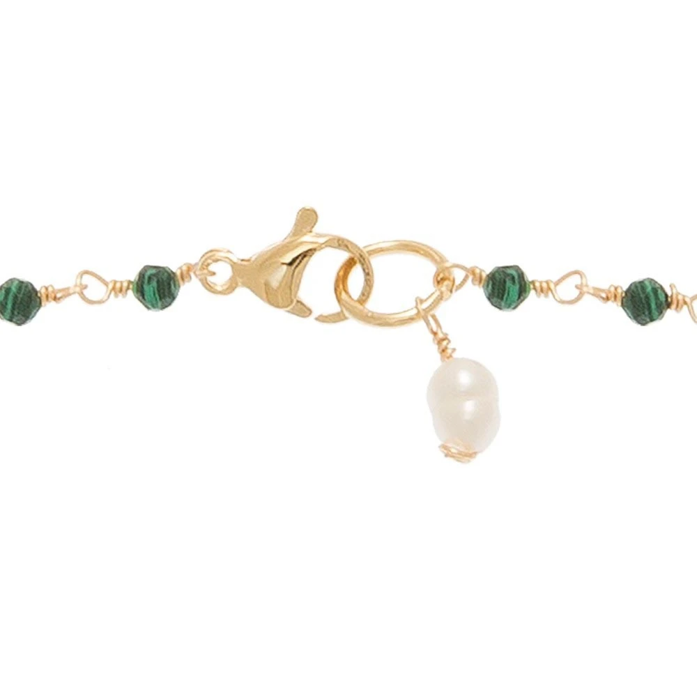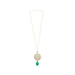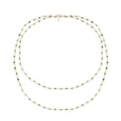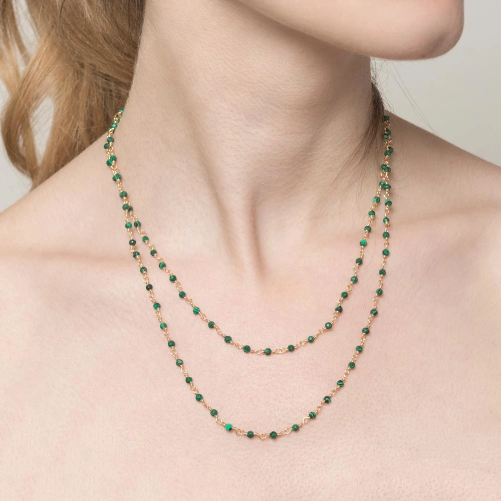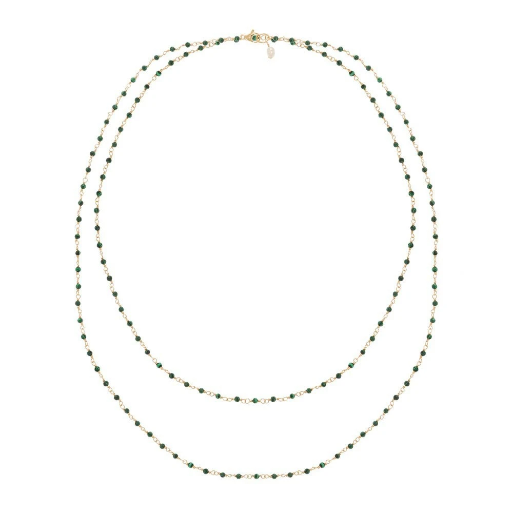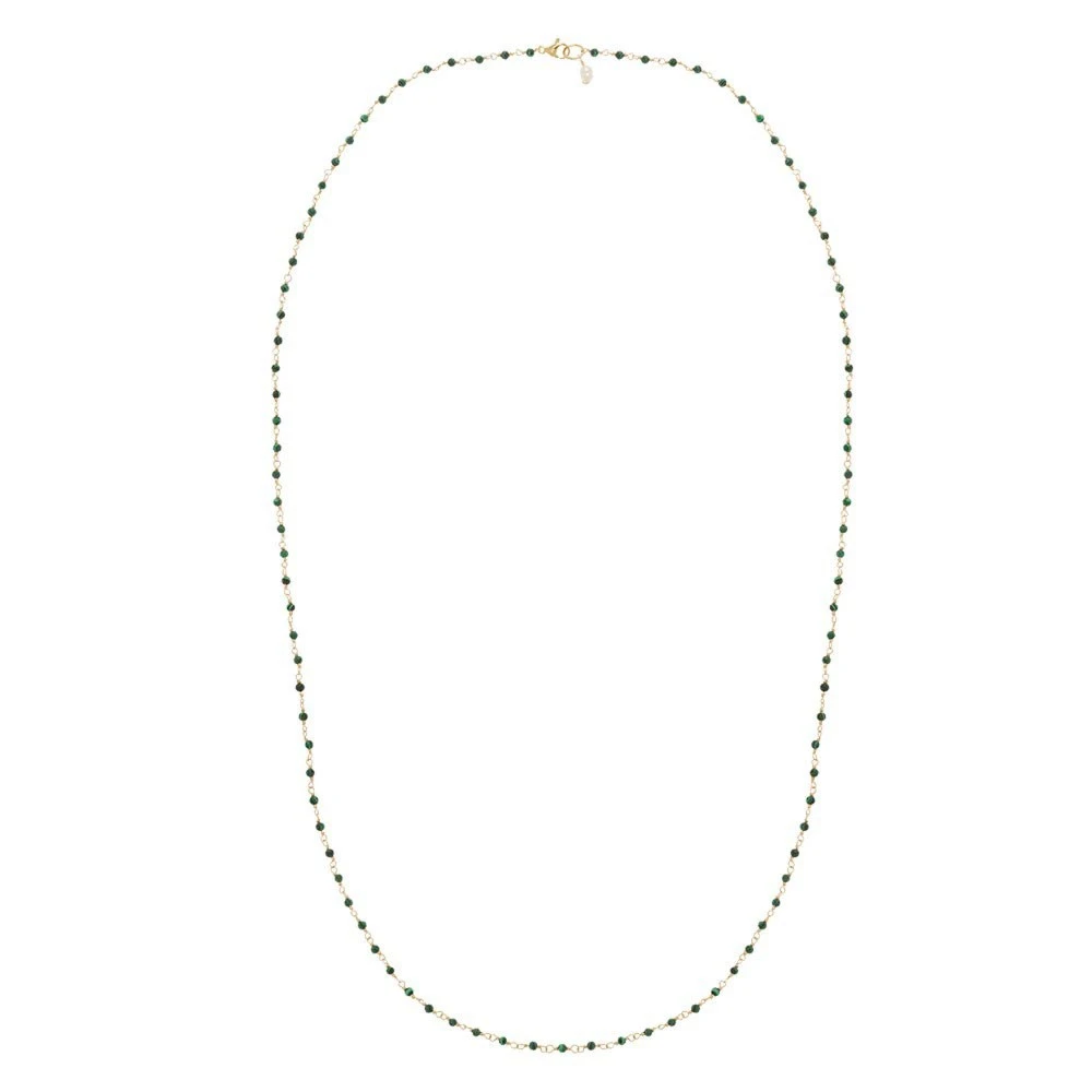 Sautoir perles fines vertes en acier chirurgical trempé dans un bain doré signé Siloé.