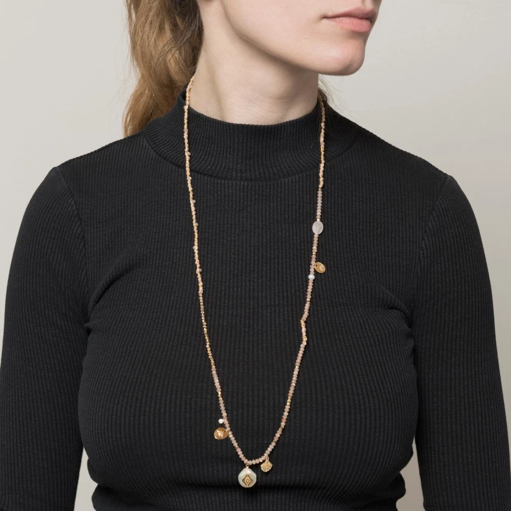 Sautoir tissé breloques et pierres en pierre de lune signé Belle mais pas que.