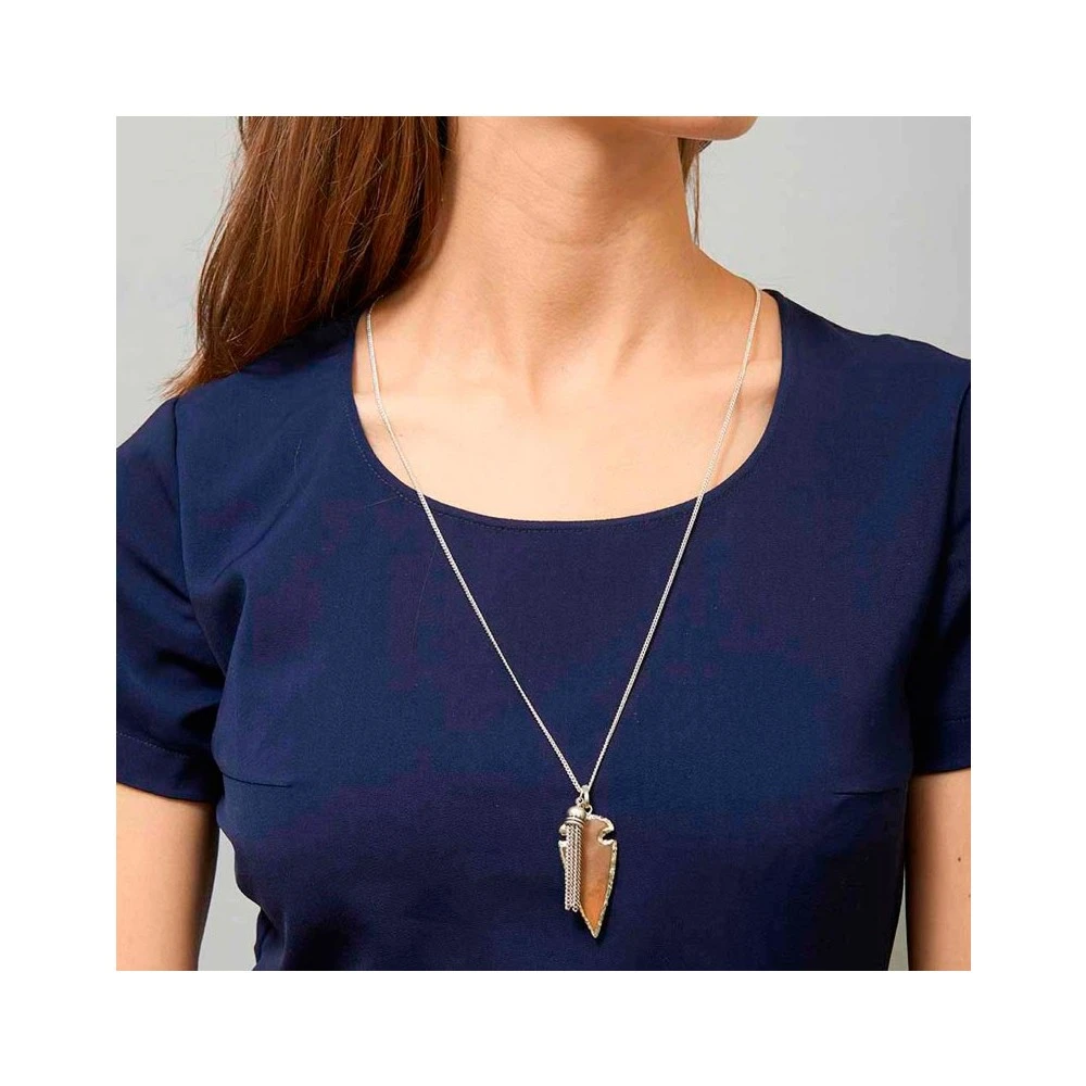 Ce sautoir argenté en pendentif tribu apache et pompon de lumière est signé Azuni.